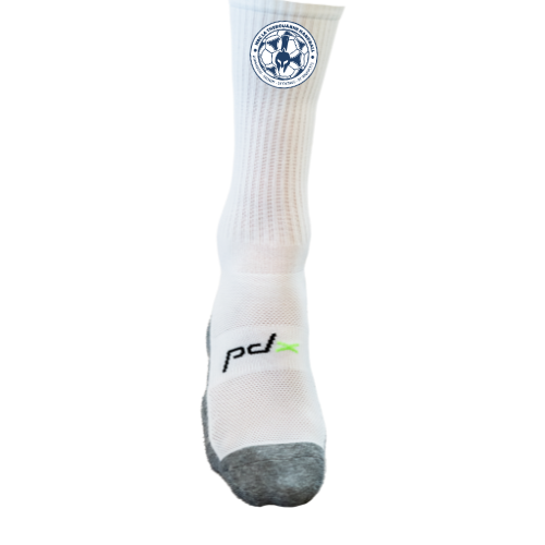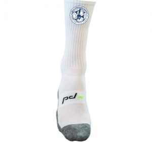 Chaussettes de sport blanches avec semelles anti-dérapantes, pour une meilleure tenue du pied lors des appuis.