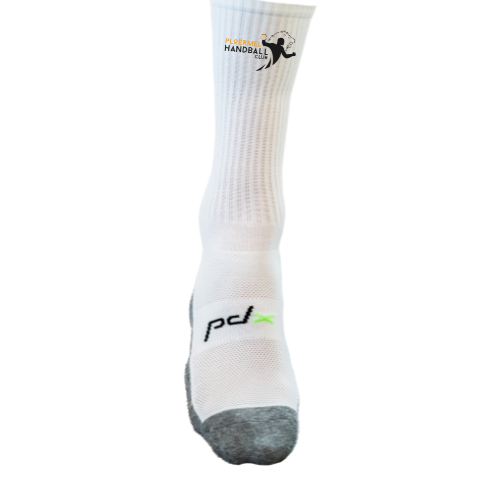 Chaussettes de sport blanches avec semelles anti-dérapantes, pour une meilleure tenue du pied lors des appuis.