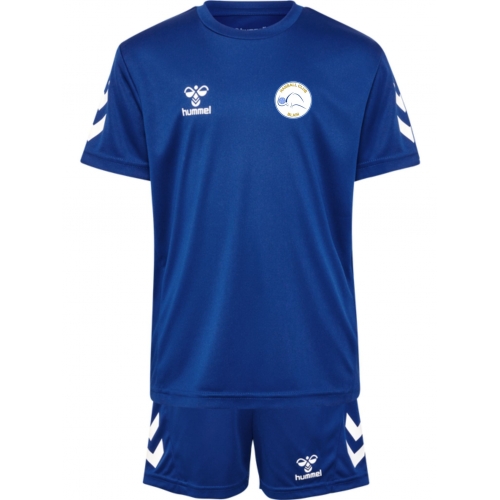 Le hmlLOGO SET KIDS se compose d'un short et d'un T-shirt. L'ensemble en polyester présente une coupe régulière avec une taille élastiquée pour le short, offrant confort et facilité d'utilisation pour les enfants actifs. L'impression du logo et les chevrons latéraux ajoutent une touche sportive.