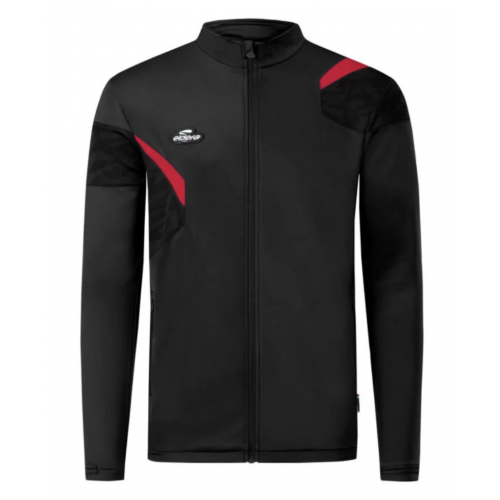 Veste en polyester élasthanne avec empiècements techniques en tricot Jacquard, spécialement développé par ELDERA, permettant une évacuation de la transpiration optimale et laissant ainsi le tissu au sec lors de la pratique sportive. Col montant avec bande de propreté intérieure. Poches latérales zippées. Fermeture centrale zippée et autobloquante. Ecusson logo poitrine et logo brodé sur le col. Composition 94% PES et 6% élasthanne.