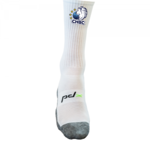 Chaussettes de sport blanches avec semelles anti-dérapantes, pour une meilleure tenue du pied lors des appuis.